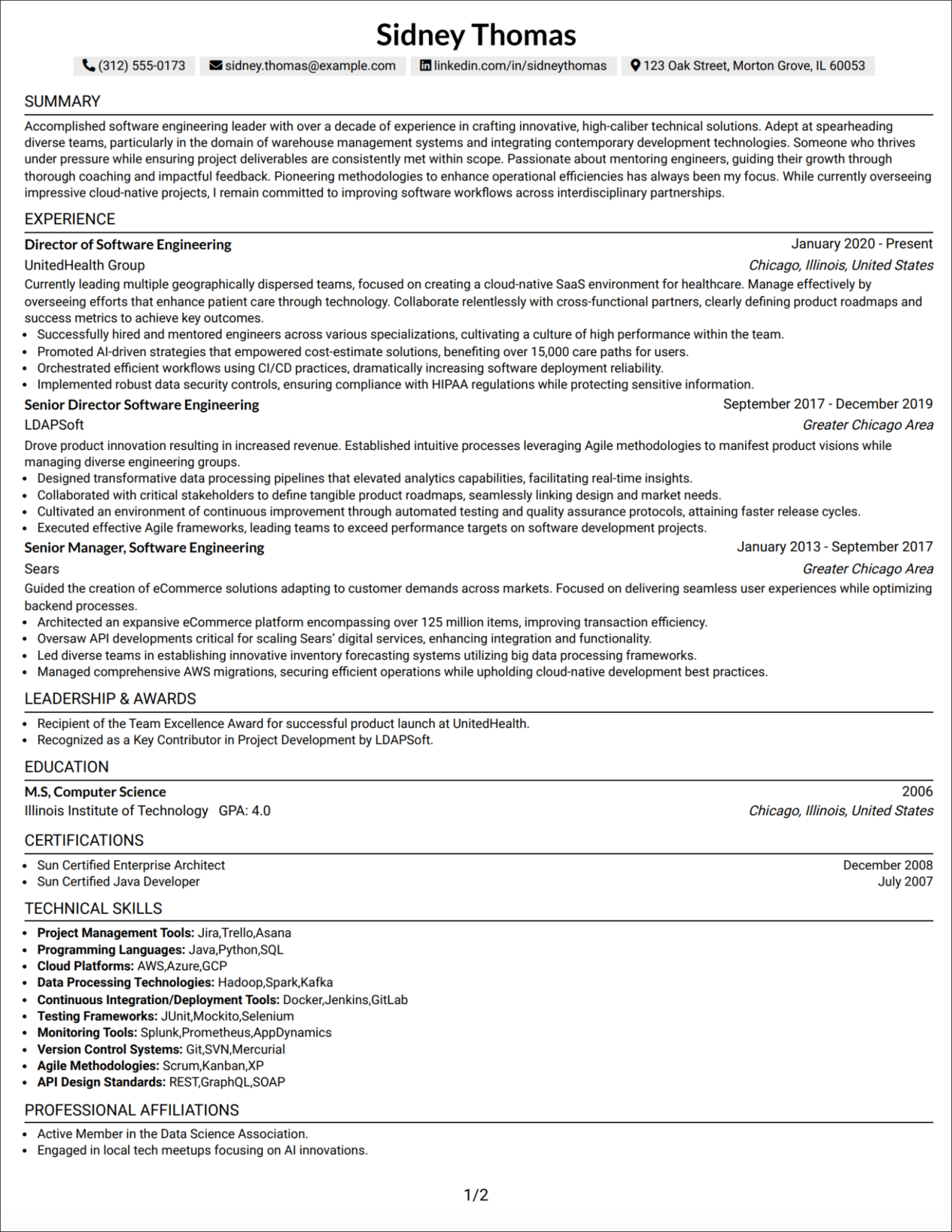 This is more than technical tinkering. It is a clear communication strategy that turns your application into a magnet for interviews. Every section, sentence, and typography choice contributes to a unified professional image. And it works. Here is an example of Senior Manager, Software Engineering resume created with Resume In Minutes.