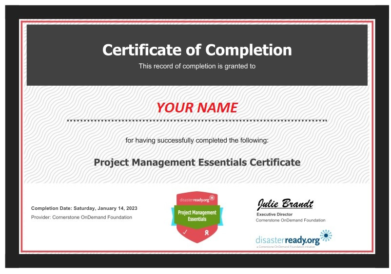 Upon completing all the courses, professionals can take the Project Management Essentials exam, which is designed to test their understanding of the curriculum. A passing score of 75% is required to obtain the Project Management Essentials certificate and badge, which is a valuable recognition of their knowledge and skills in project management.